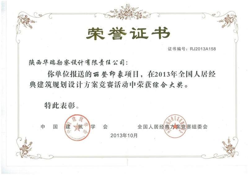 全国人居经典建筑规划设计方案竞赛活动中荣获综合大奖(丽登印象项目)