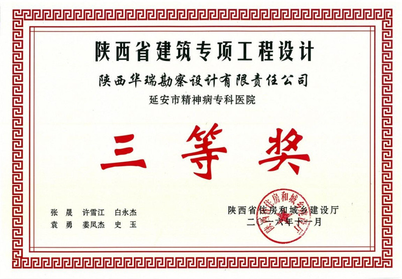 陕西省建筑专项工程设计三等奖(延安市精神病专科医院)